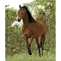 Hi Pile Raschel knit throw, wildlife Horse in meadow, matching binding all around edge, soft and luxurious, great detail and color
