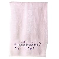 (More customer reviews)My son's godmother bought him a blanket with Jesus Loves Me embroidered on it for his baptism so when I was asked to be my niece's godmother I knew just what I wanted to get her. I searched for the exact blanket my son received but couldn't find it. Instead I found this one and it turned out to be even better! The colors are gender neutral but what worked out best for me was that it matched her nursery perfectly. It is so soft and cuddly that it is sure to be a favorite "go to" blanky....that will always remind her that Jesus Loves Her and so do I. I would highly recommend it!