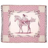 Fairy Tale Pony ECO2 Cotton Throw Blanket Pink. A wonderful throw for baby girls and children. ECO2Cotton 2 1/2 layer woven blanket throw is 50"x60". High quality woven pink throw can also be used as a wall hanging in a newborn baby's nursery or child's room. Environmentally friendly product, 90% Natural and/or Recycled Fibers, 10% Virgin Acrylic. Machine wash cold, tumble dry low. Made in the USA.