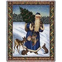 (More customer reviews)This is my second purchase of a throw by PureCountry Weavers. They are a US company in Lynn, NC. If you want to view a complete line of their products, visit their website at[...]. The only negative comment I have on this purchase is that it is mis-labeled in the Amazon advertising. (Hence a 4 star, rather than 5 star review). It states the Blanket/Throw is 34 x 26 (which would be about the size of a baby blanket or smaller). Since I had previewed the item on the manufacturer's website, I was fairly confident that I was ordering a full-sized throw. Not only is it full-sized but could be considered a very generous size at 4-1/2 feet wide by 6-1/2 feet long. The quality of the 100% cotton yarns is exceptional, offering vivid colors and a pleasing softness. I love the detail in this throw and the image of Father Christmas with the pine tree and woodland creatures is charming. I am also very pleased to have purchased an item made in the USA! I bought this throw as a gift for friends who have expressed that they love it! The packaging was very good and shipping was faster than advertised. I would definitely recommend this Seller and this product.