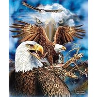 This 13 Eagles Queen Sized Plush Raschel Signature Blanket by artist Stephen Michael Gardner is a great gift idea for the Eagle lover on your gift list, or get it for yourself! It measures 79x95 inches, and is super soft and cozy! This is a high quality, super plush queen sized blanket. It is absolutely SUPER SOFT! It is 100% polyester, for easy wash and tumble dry low.