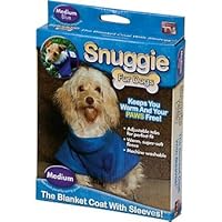 The ultimate in cold weather doggie accessories, the Snuggie for dogs fleece blanket coat with sleeves is perfect for every breed of dog! Keep your fuzzy friend warm from head to paw with this super-soft, thick, luxurious fleece! The adjustable Velcro tabs ensure the perfect fit for any size dog from Chihuahua to Bull Mastiff. The Snuggie for dogs allows complete freedom of movement. As the temperature drops, keep your pet warm and comfy! To achieve the best fit (length) measure from the base of your dog's neck to the beginning of the tail. This item is size MEDIUM (intended for dogs measuring 12"-15" in length and 12 - 19 lbs) and Blue in color. *If your dog is pudgy, furry, or deep-chested please select one size larger to ensure a comfortable fit! Some examples of a snuggie medium fit would be beagles, boston terriers, cocker spaniels, miniture poodles, lhasa apsos, pugs and of course many many more.