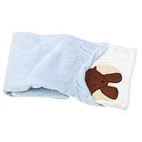 30" x 40" snuggly soft fleece toddler blanket featuring a brown puppy on a cream colored corner. This soft cozy blanket will make a great security blanket, keep baby warm of cool evenings out, or will just keep your baby cozy and warm as they sleep the night away! 100% Polyester. Machine wash cold, Do not bleach, Tumble dry low, Do not iron.