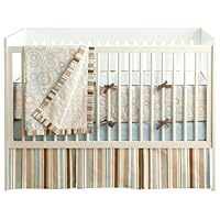 Our four-piece set includes a Pleated Crib Skirt, 100% cotton Fitted Sheet, Reversible Bumper, and Comforter with bright print on one side and soft, quilted pattern on the reverse. The soft fabrics combined with our bright, modern patterns and unique quilting make this set perfect for any nursery. Fits standard size cribs.
